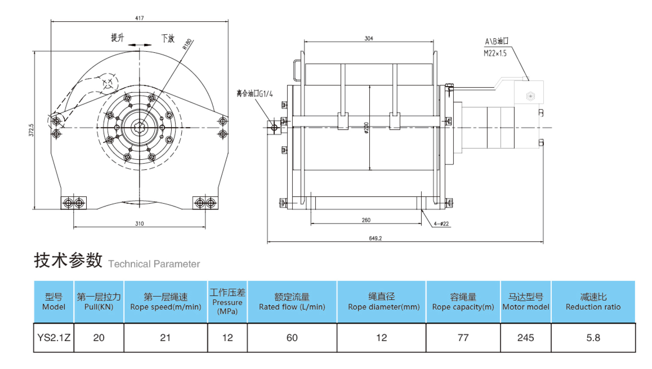 YS-2.1Z自由下放絞車
