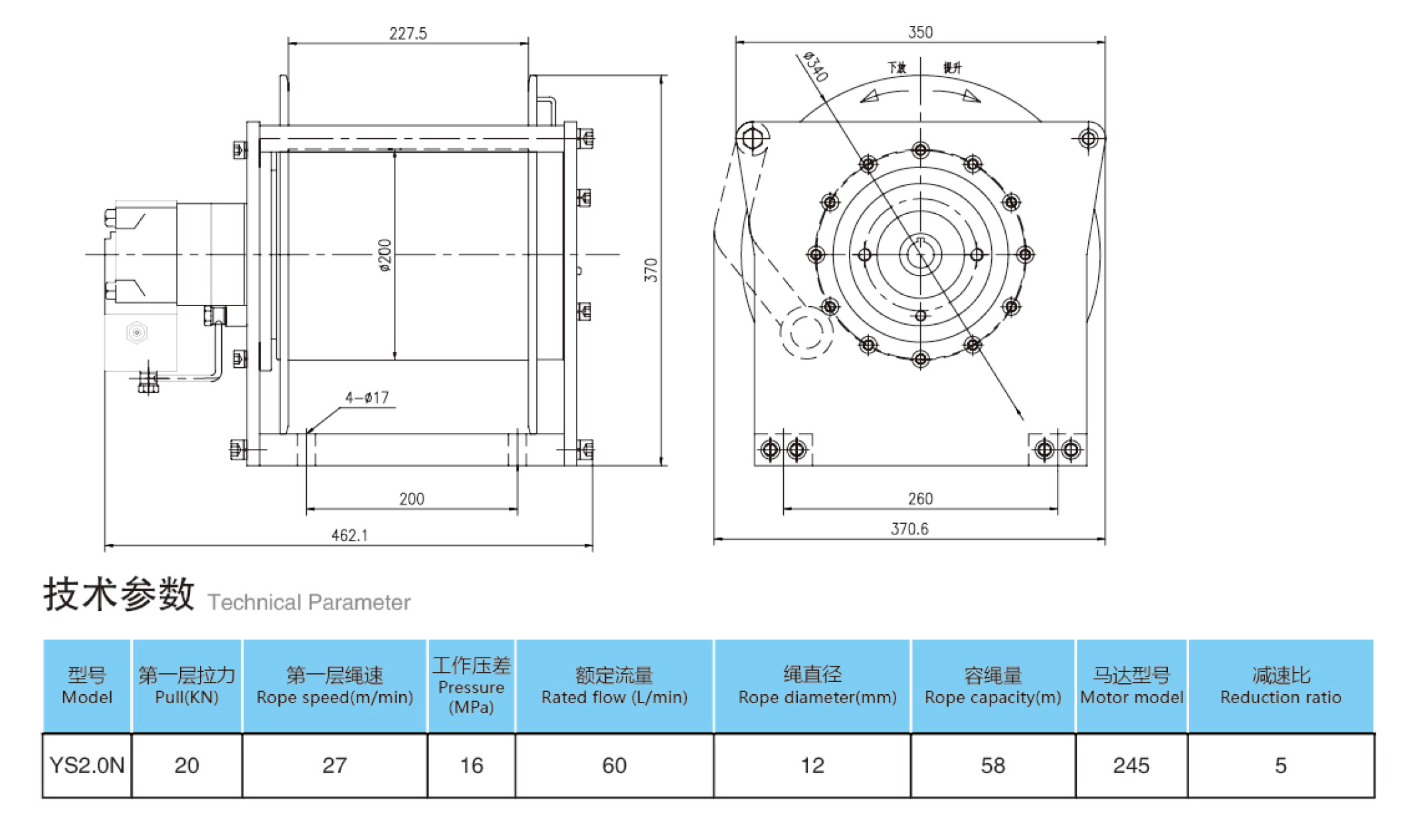 YS-2.0N內(nèi)鑲絞車